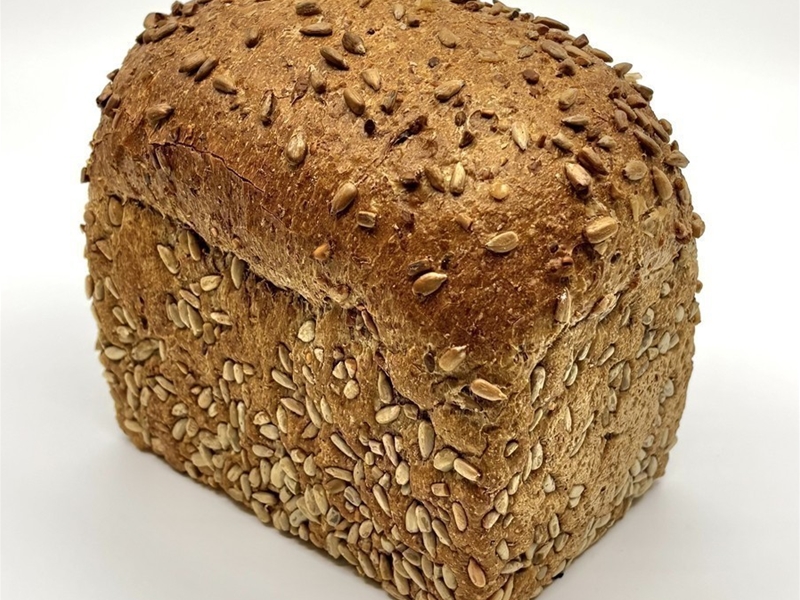 Een volkoren broodje gemaakt van tarwemeel gevuld met zonnebloempitten.