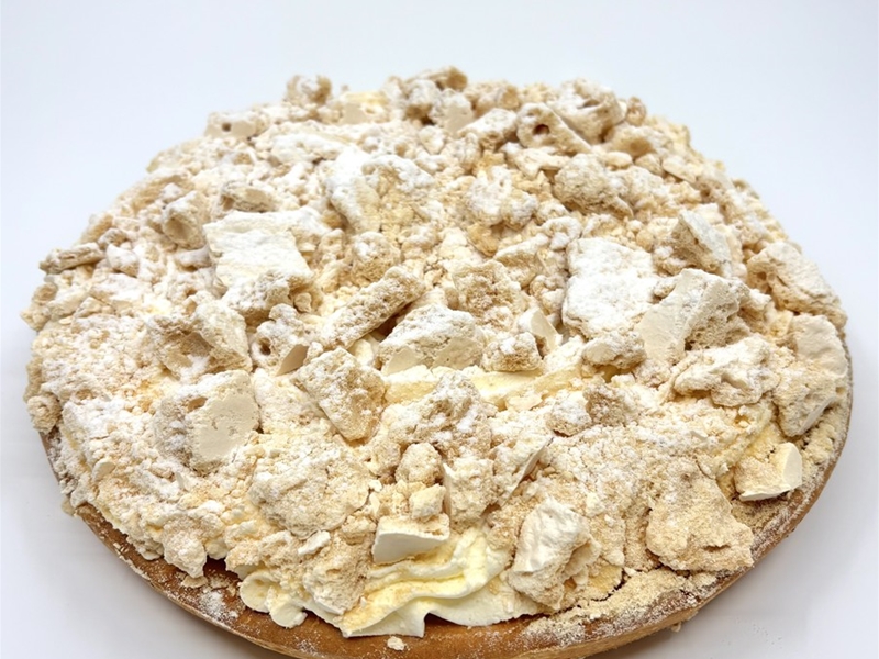 Onze 10 persoons kersenvlaai met room, slagroom en knapperig schuim. Kies je eigen bodem.